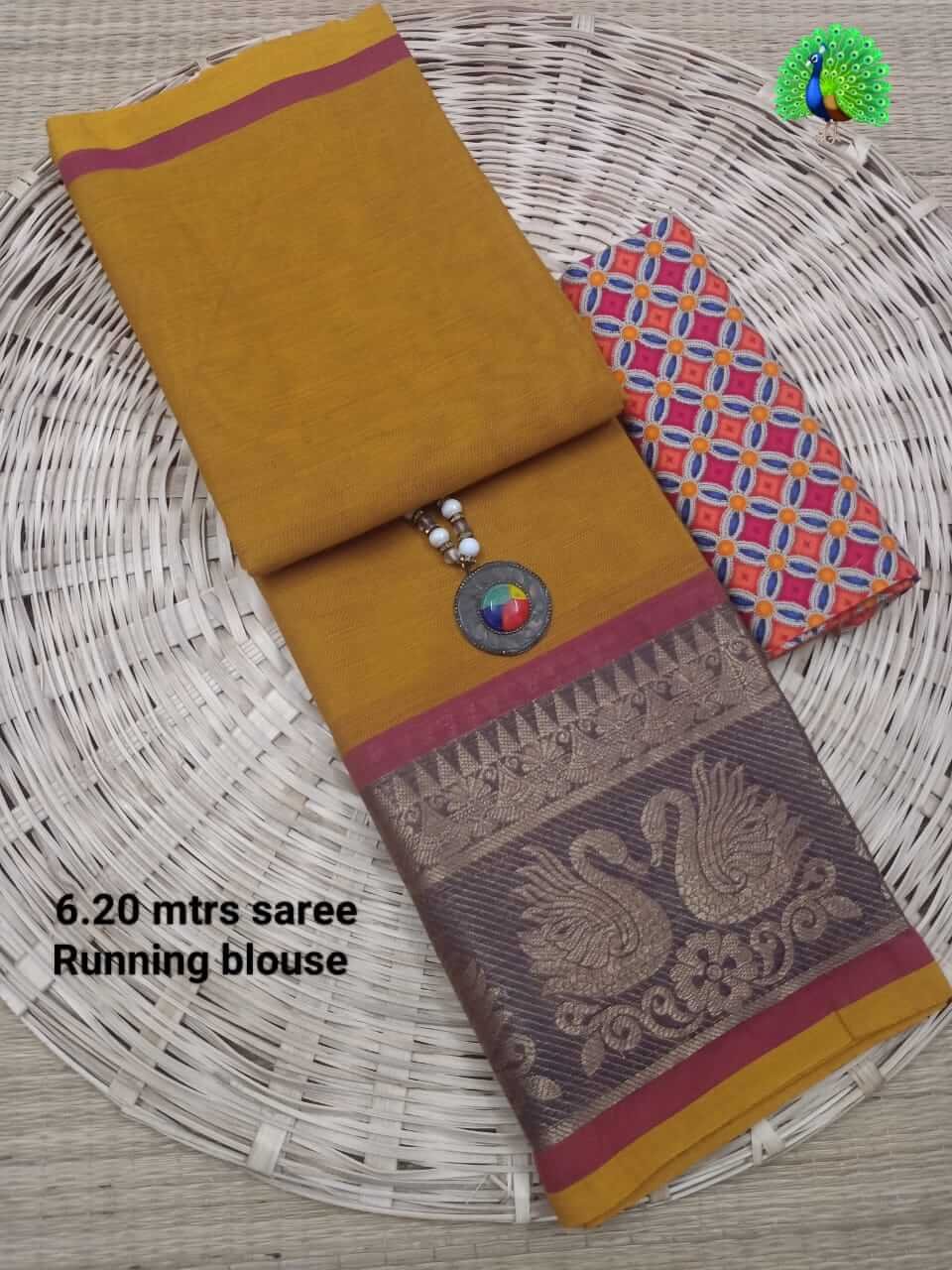 These cotton sarees are woven in Karaikudi and Chettinad. The Unique features of these chettinad sarees is its rich look and vibrant colours in different combination of checks, stripes, plain and contrast colours.