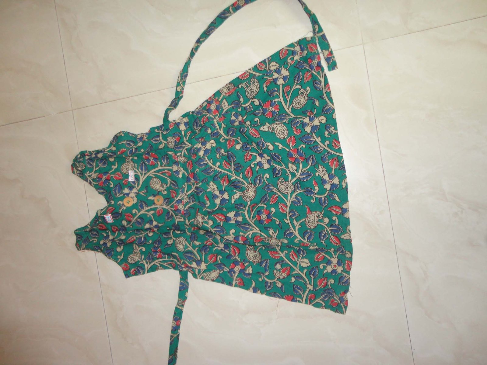 Perfect wear for the summer season with side rope. These frocks can used as daily wear and it has a button at the backside. This is kalamkari cotton material which will be soft and the colour will be sobber due the kalamkari process.