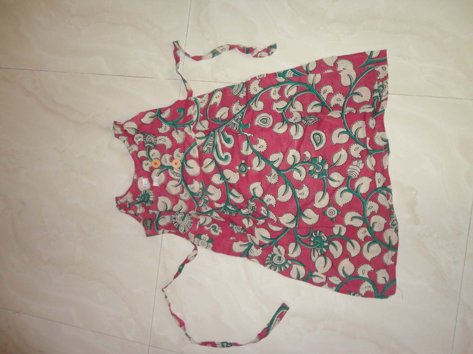Perfect wear for the summer season with side rope. These frocks can used as daily wear and it has a button at the backside. This is kalamkari cotton material which will be soft and the colour will be sobber due the kalamkari process.