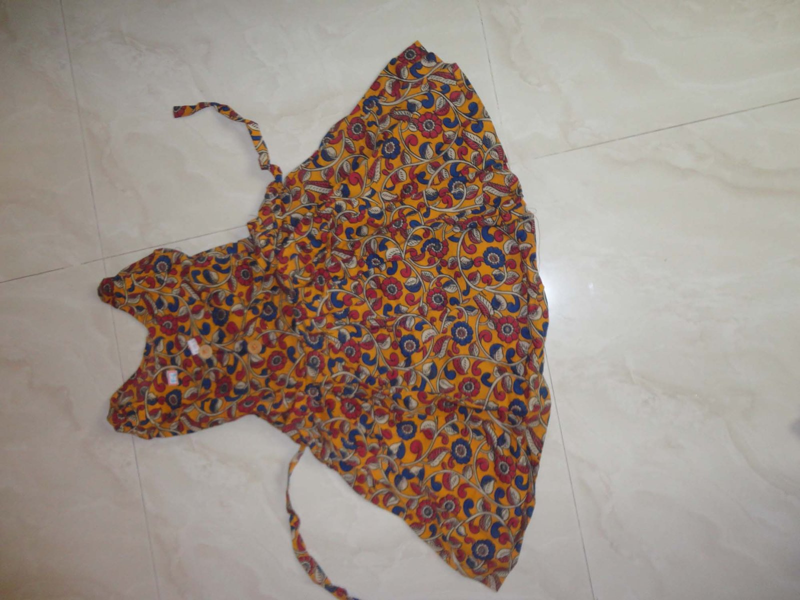 Perfect wear for the summer season with side rope. These frocks can used as daily wear and it has a button at the backside. This is kalamkari cotton material which will be soft and the colour will be sobber due the kalamkari process.