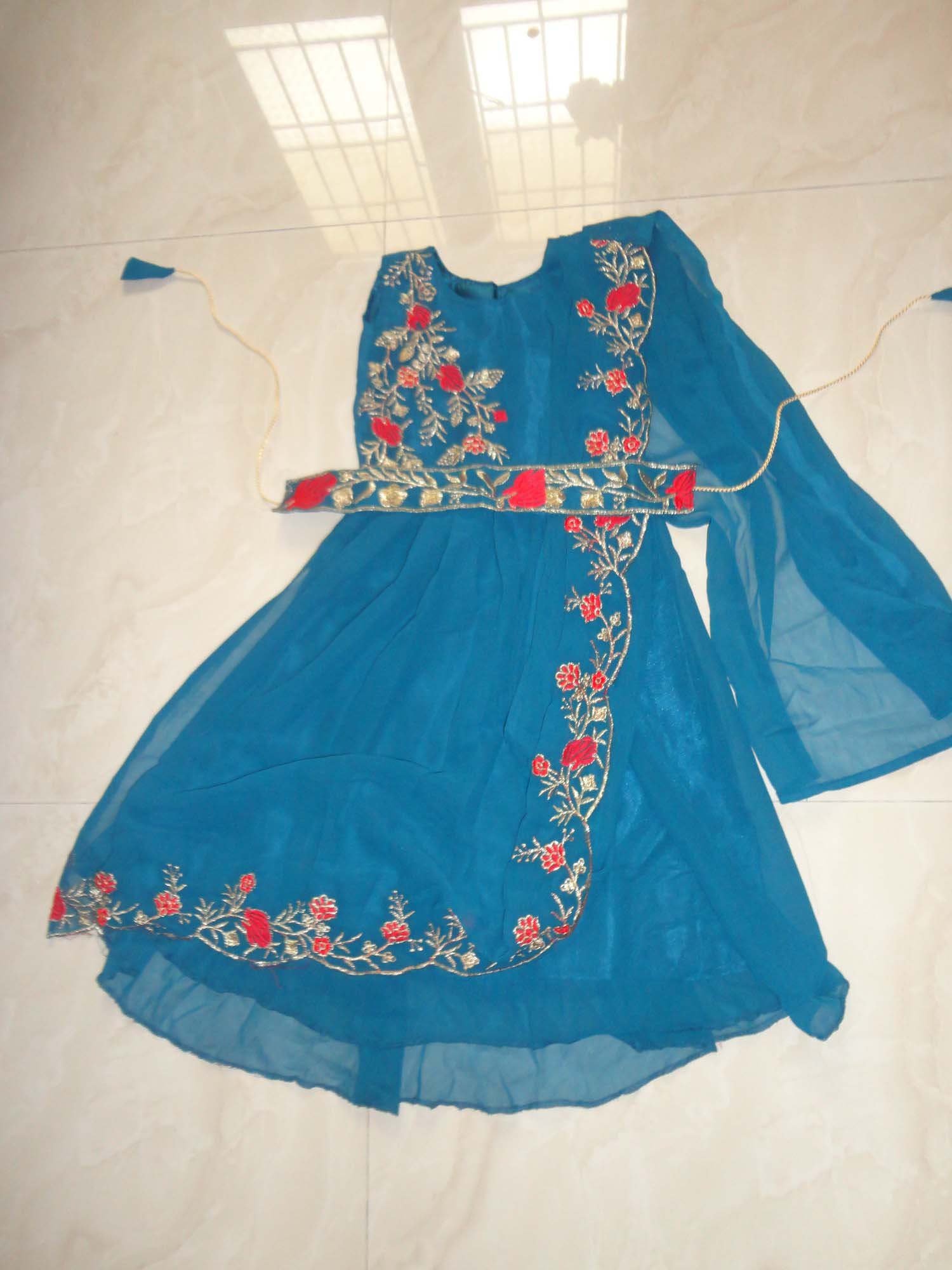 These kind of frocks comes with full lining in rayon material. This is a type of saree gown with seperate hip belt