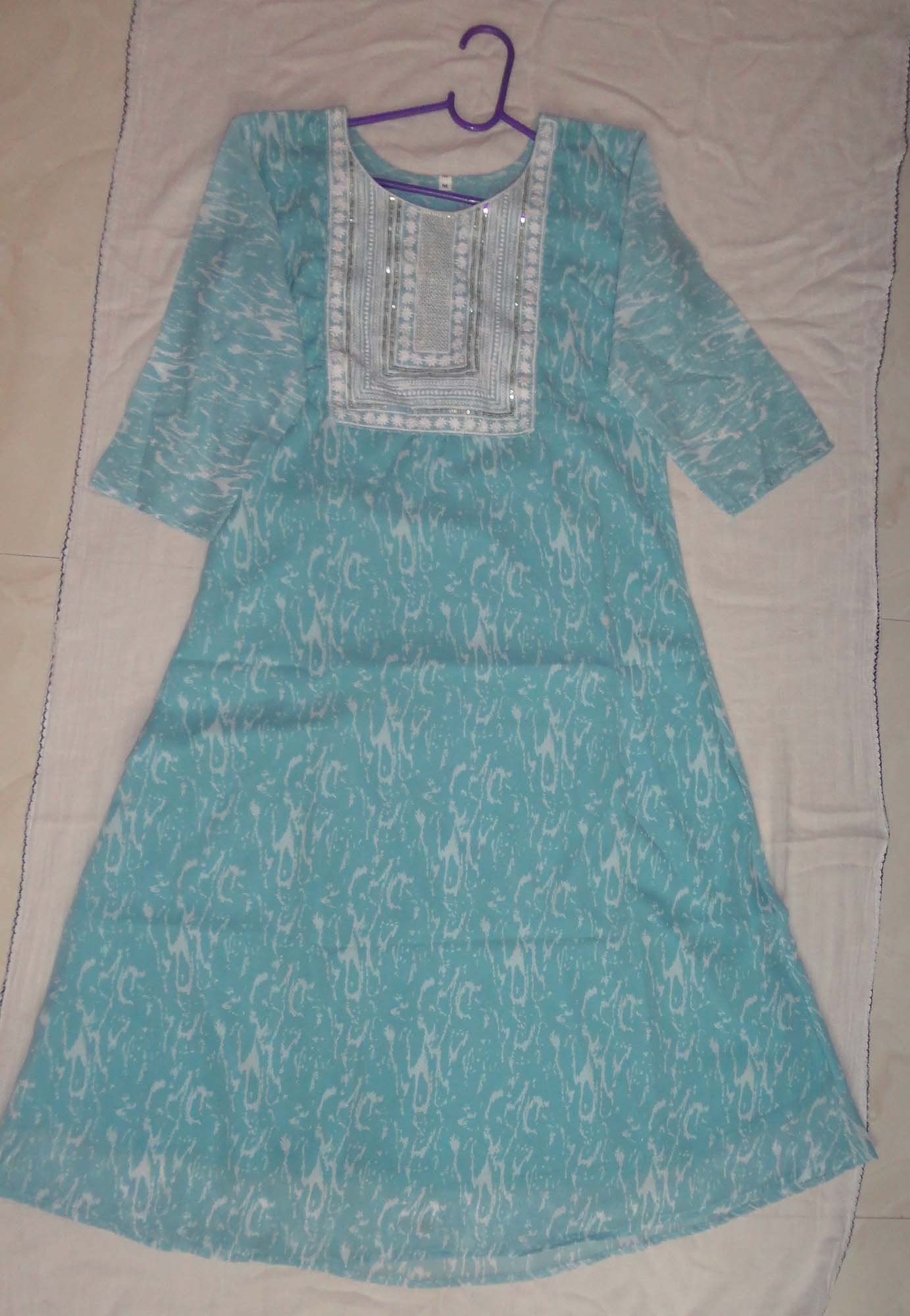 These are rayon kurtis with embroidery in the yoke part. Kurtis are stitched with sun crepe lining. These are umbrella type kurtis.