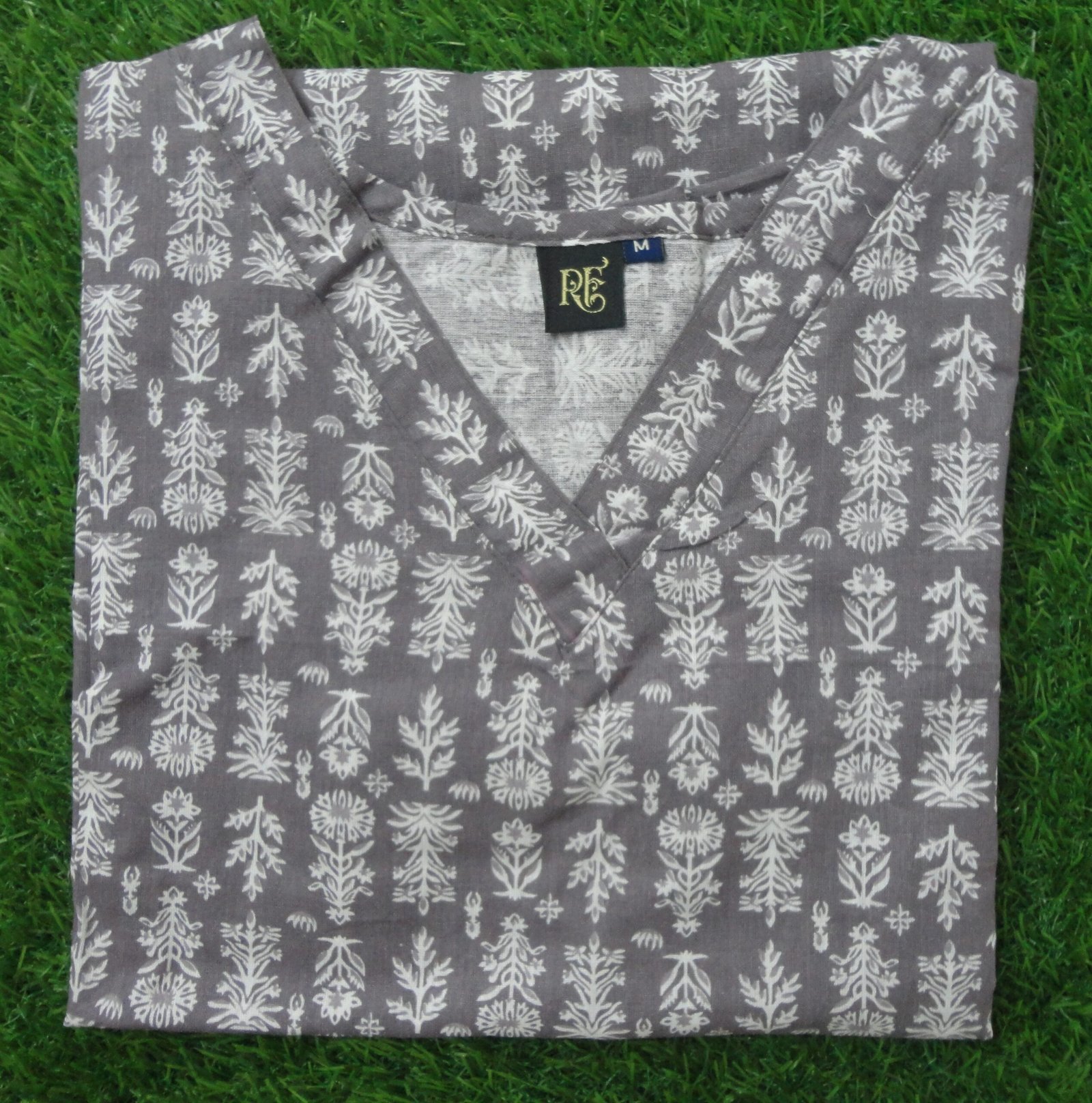 These are customized Kurtis without lining. Cotton kutis can be worn to office. This type of kurti has a slit in the side.