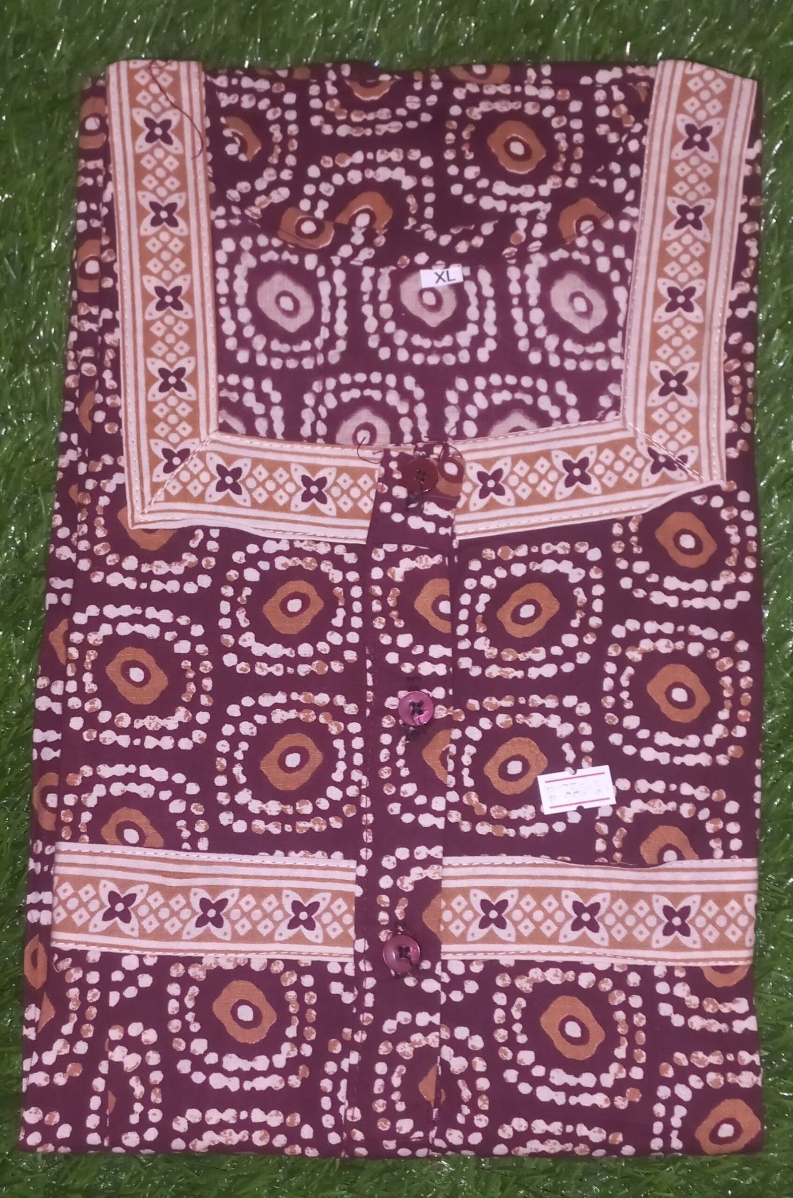 This XL nighty is 100% pure cotton with bust 46 – 48 height 54 – 55 inches. It has a side pocket