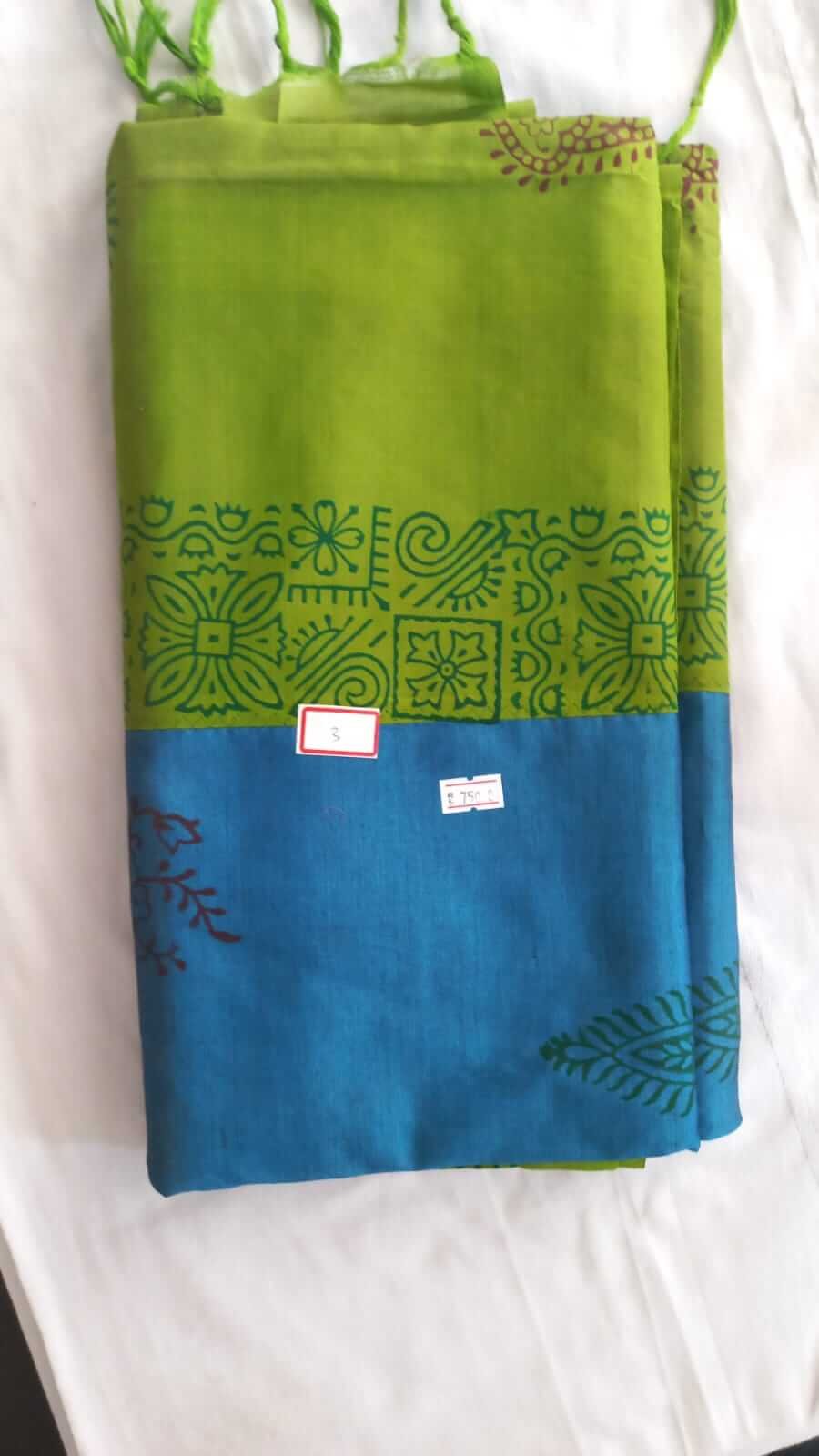 These type of sarees are blend of cotton and polyser fabrics. These sarees are known for their comfort, durability and easy care. These are everyday wear comfortable saree, with contrast colour combinations.