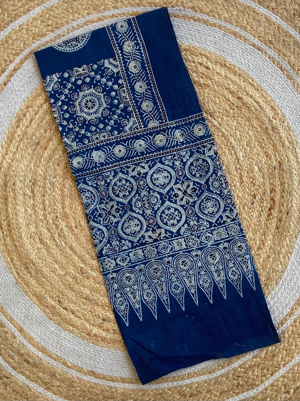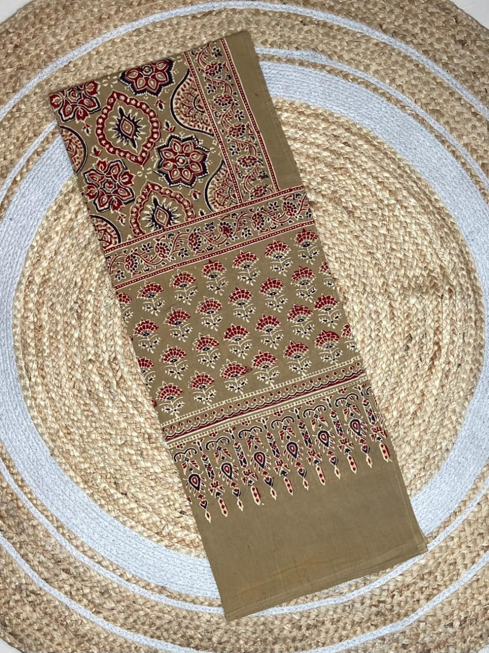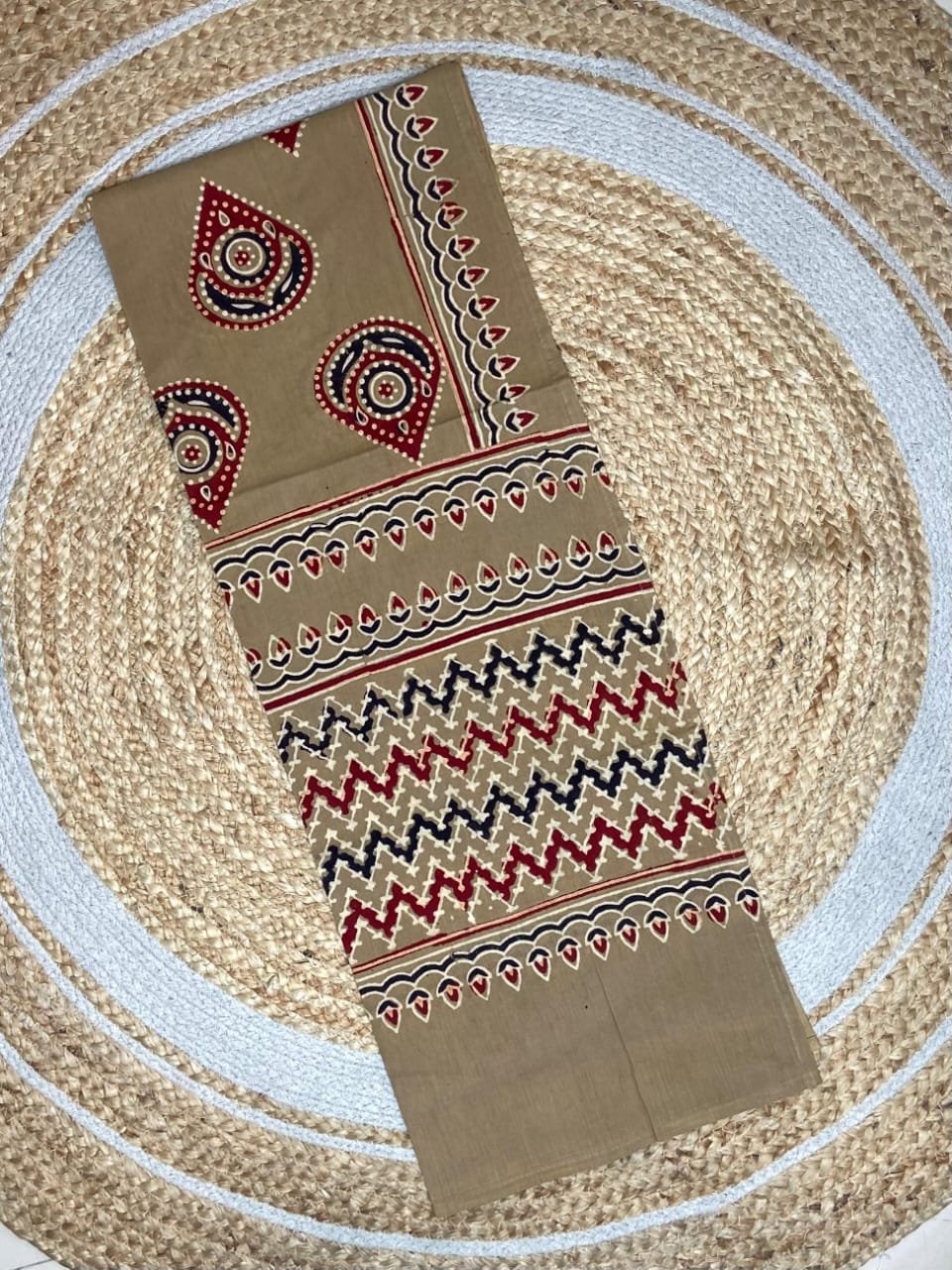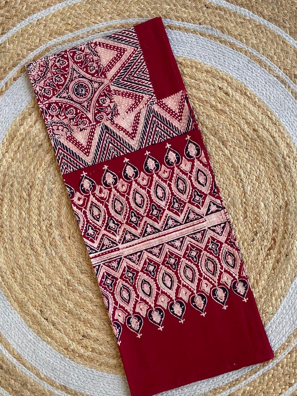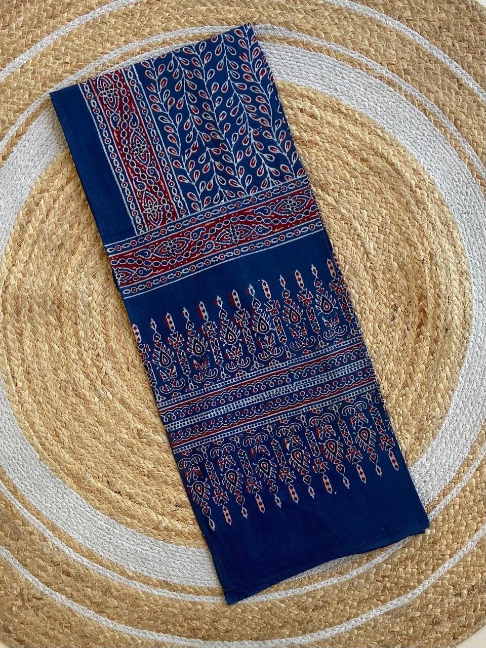 Mul Mul Cotton hand block print ajrakh stole. These are original block prints and can be matched to all suits.
